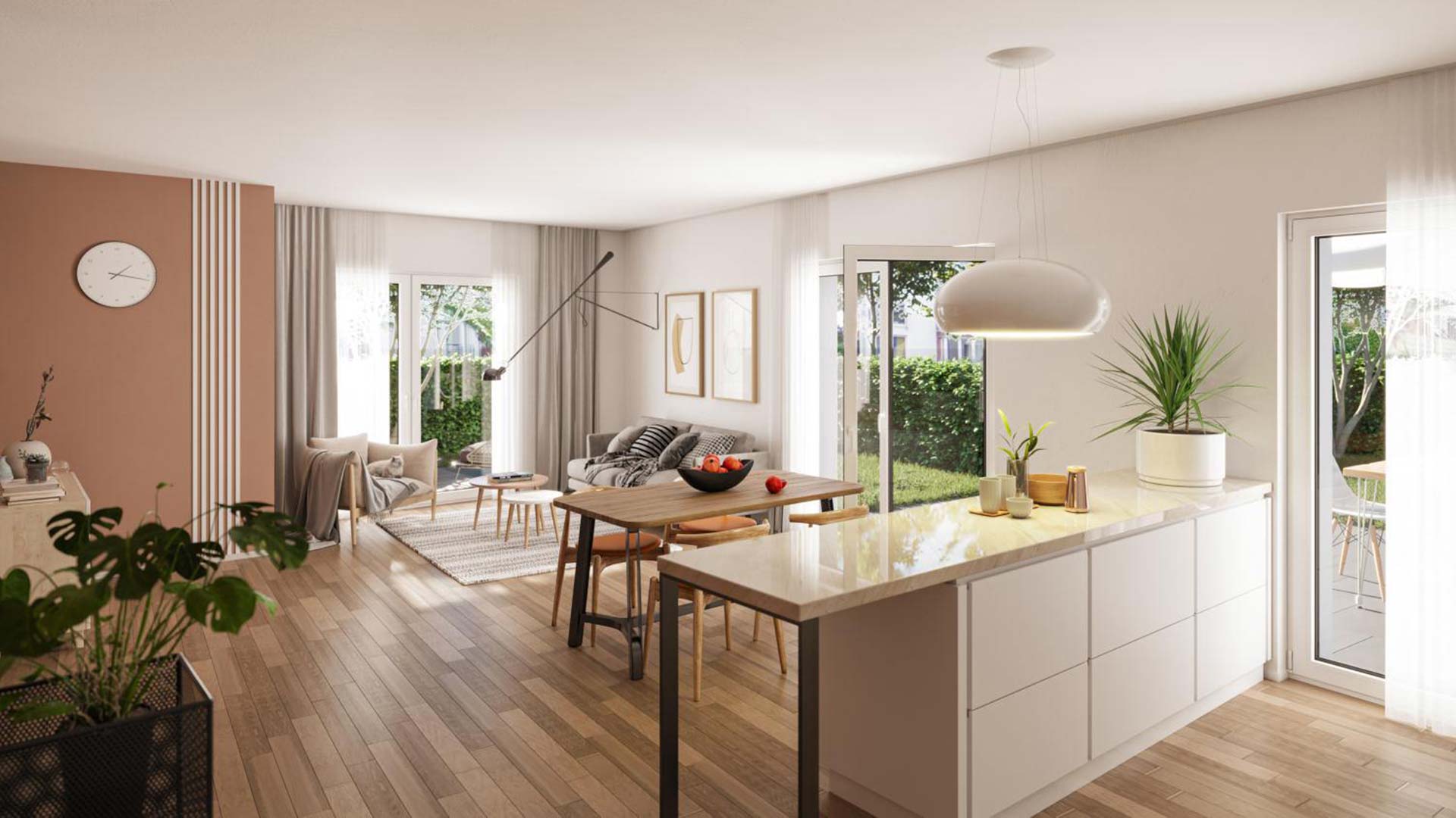 Ob 2-Zimmer oder Maisonette-Wohnung: Hier gibt es Wohlfühl-Vielfalt für Singles, Pärchen und Familien. Alle Wohnungen sind mit Garten, Loggia oder (Dach-)Terrasse ausgestattet. Genügend Fläche für die eigene Ruheoase.
